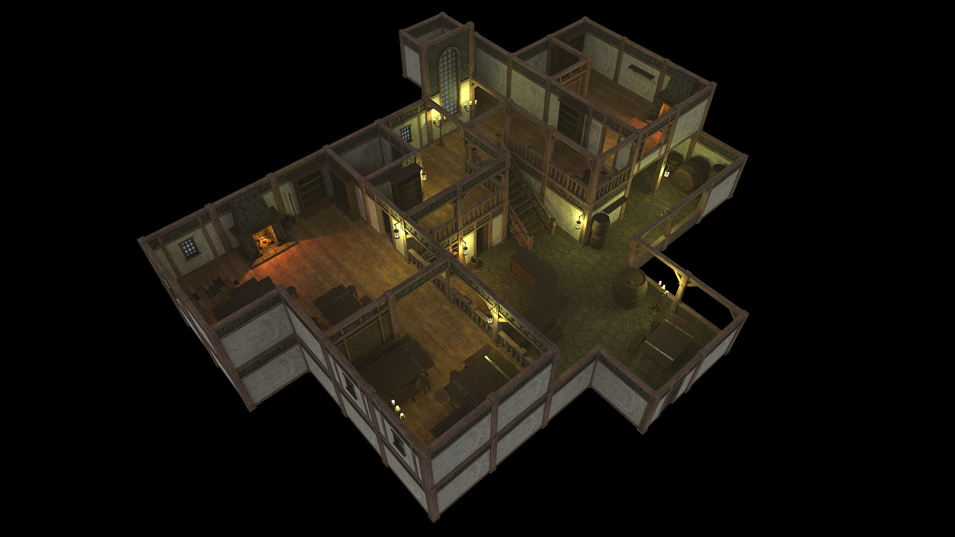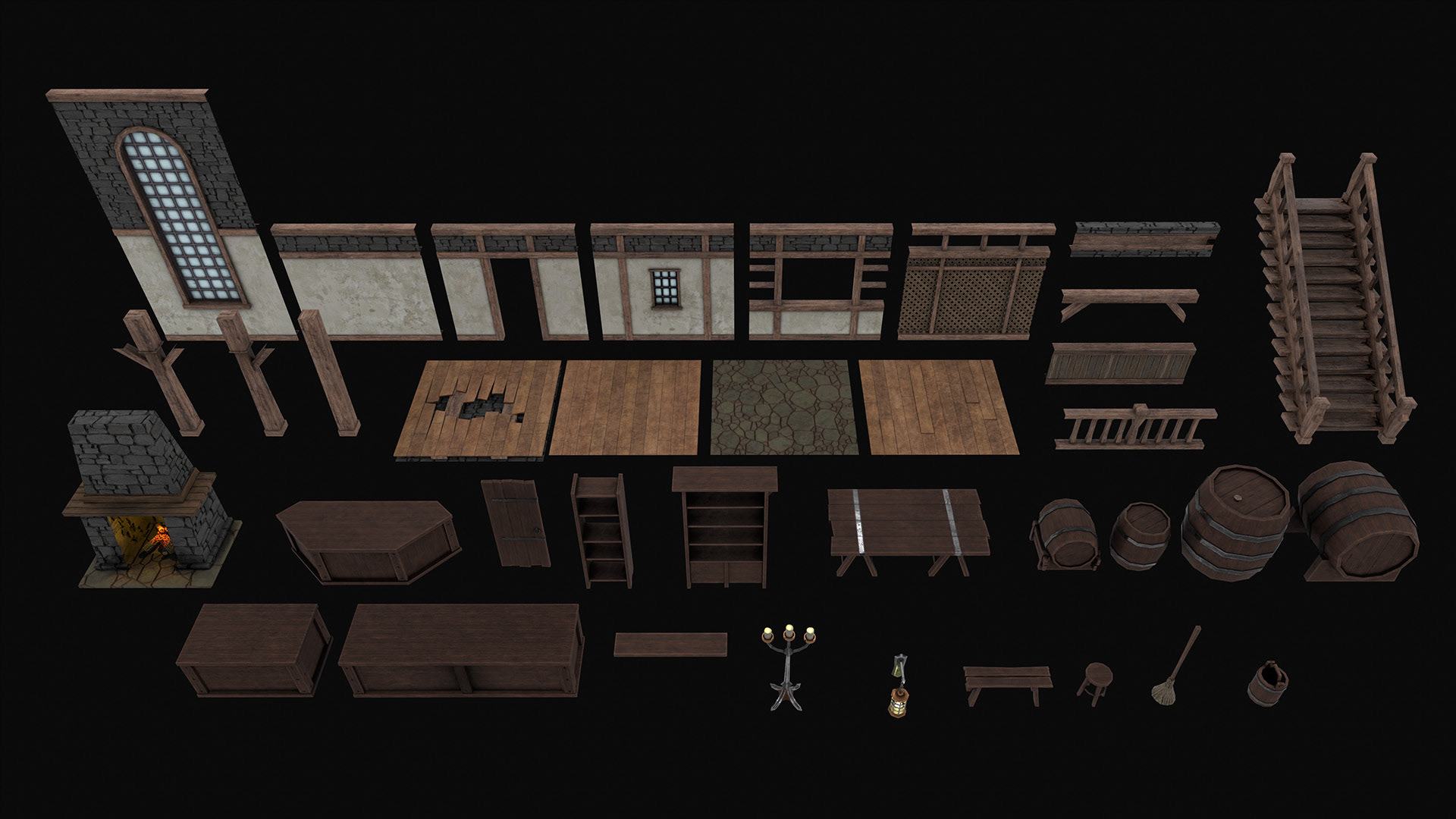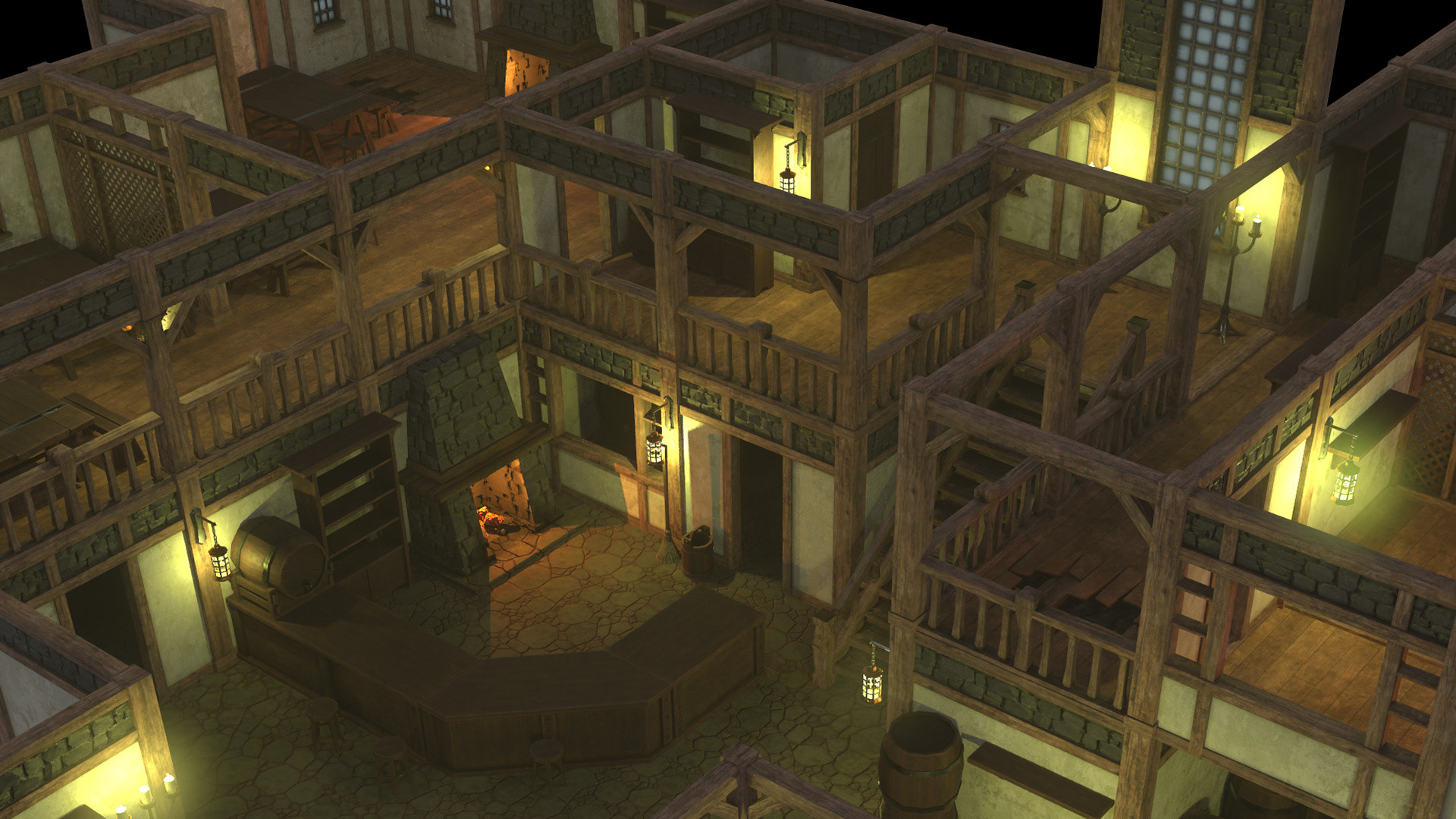 Cantina realizada por módulos en low poly, texturizado con Substance Painter y renderizado e iluminado con Marmoset Toolbag.