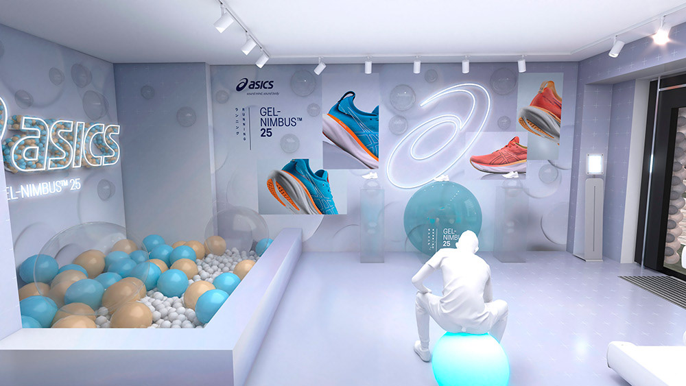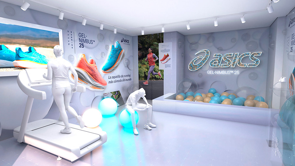 Diseño de espacio para el lanzamiento de las zapatillas Asics Gel-Nimbus 25