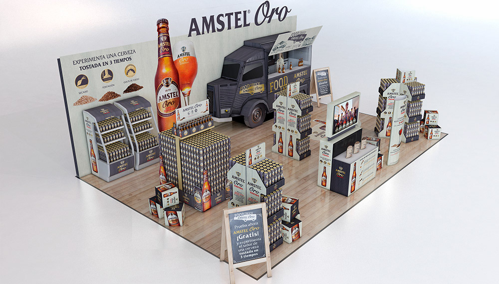 Diseño de espacio especial en PDV de la cerveza AMSTEL Oro, siendo un espacio educacional en el que da a conocer cómo se fabrica, se sirve y con que marida esta cerveza tostada. Realización de Artes Finales.