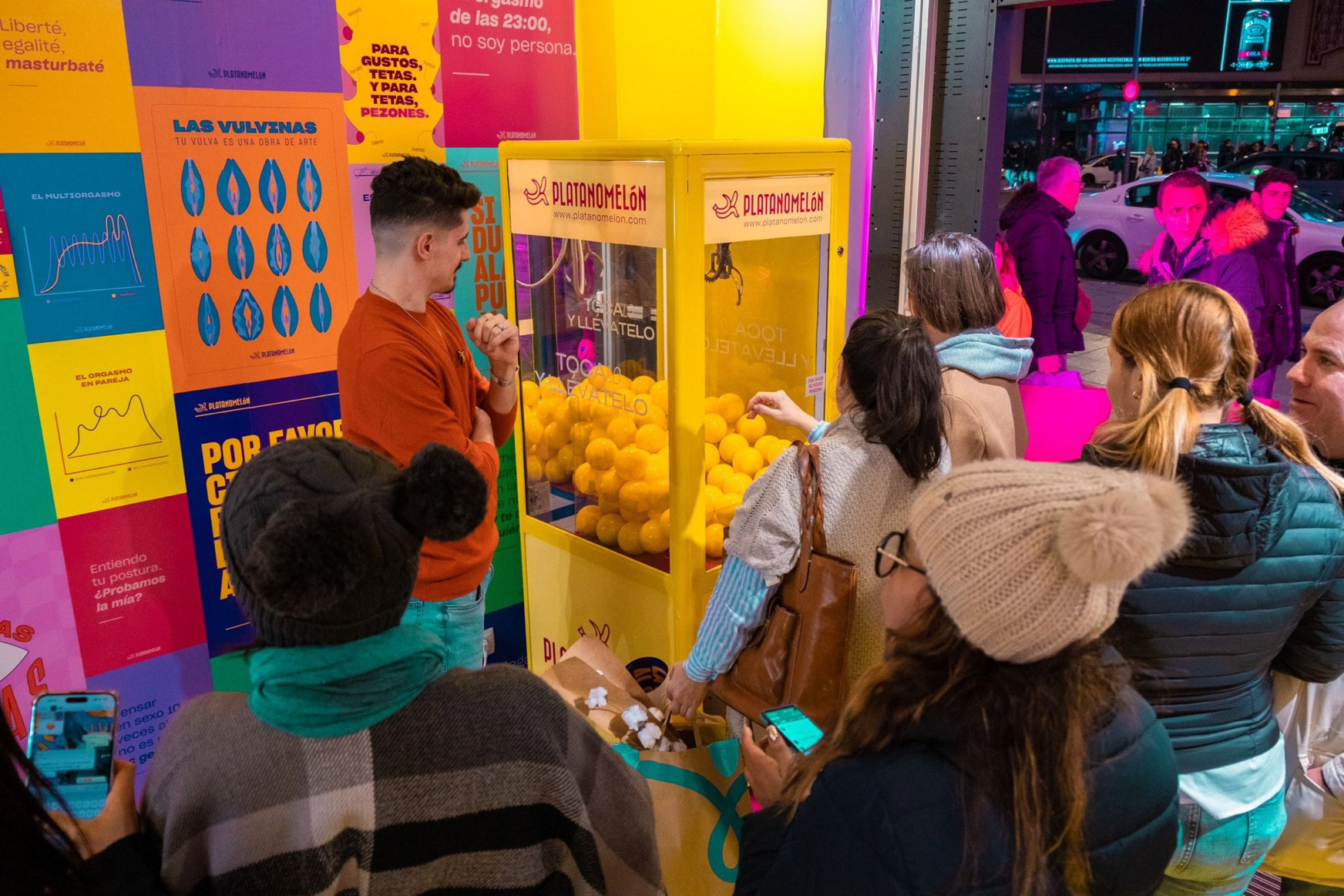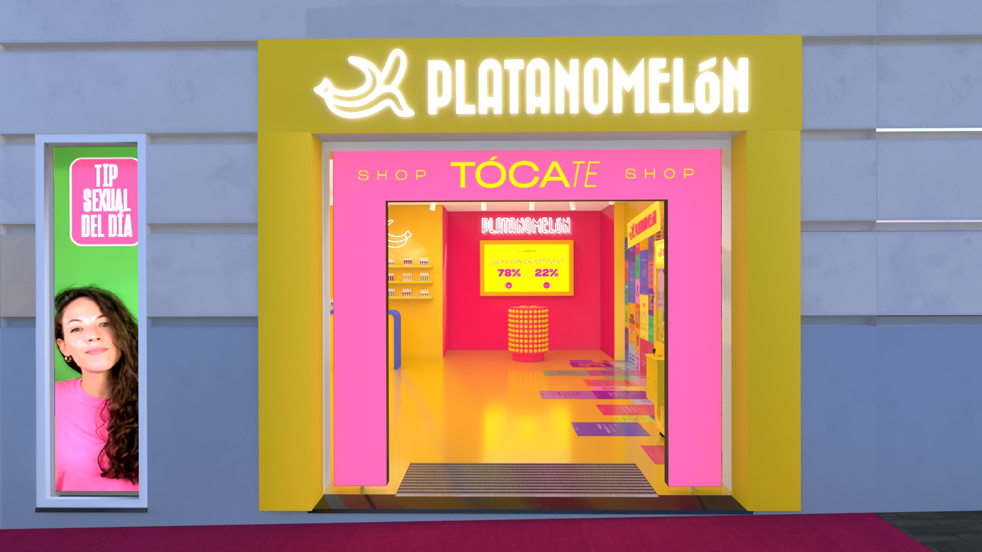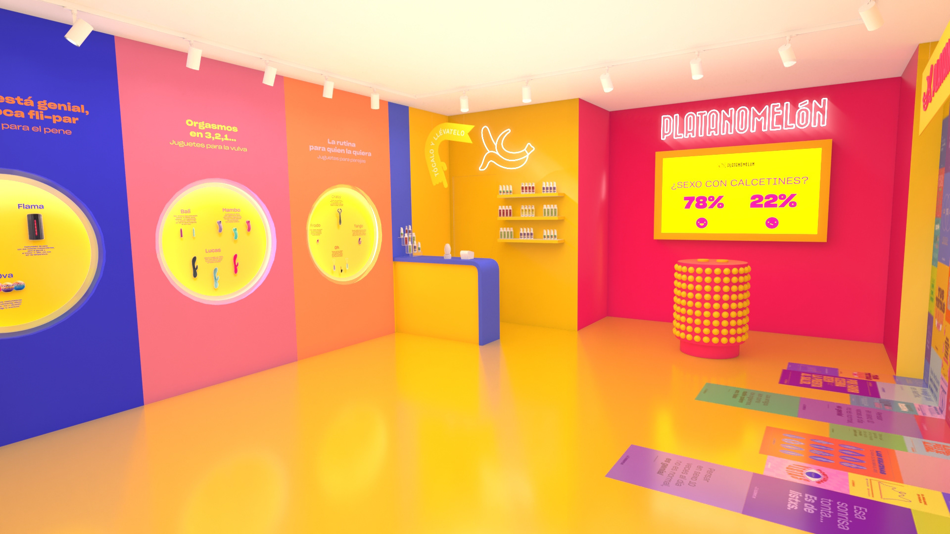 Diseño de la primera tienda física para PLATANOMELON durante la campaña de Navidad.