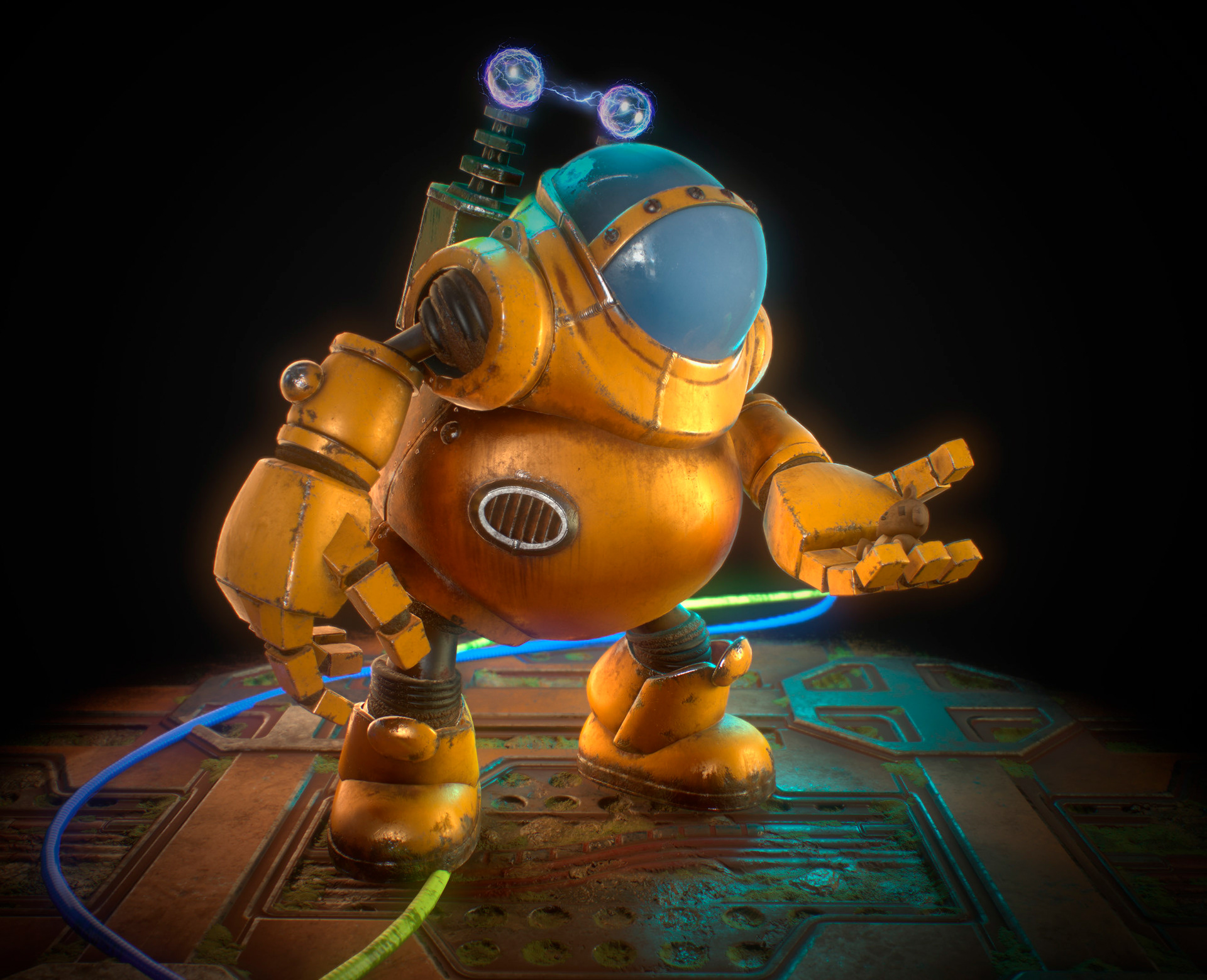 Texturizado con Substance Painter y Substance Alchemist. Iluminado y renderizado con Marmoset Toolbag. Postproducción con Photoshop