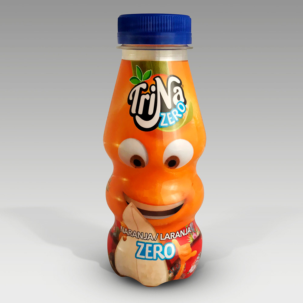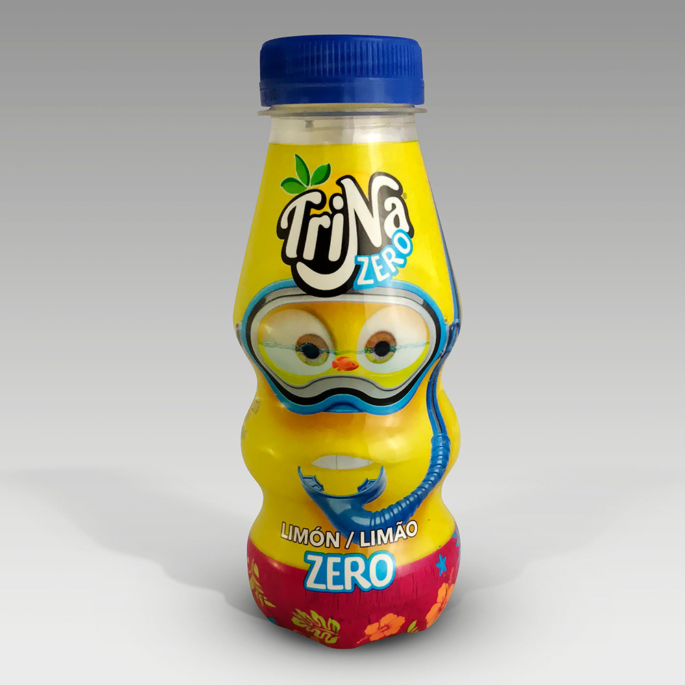 Diseño y Arte finalización de etiqueta especial verano para TriNa Mini, en los tres sabores de la marca: naranja, limón y manzana.