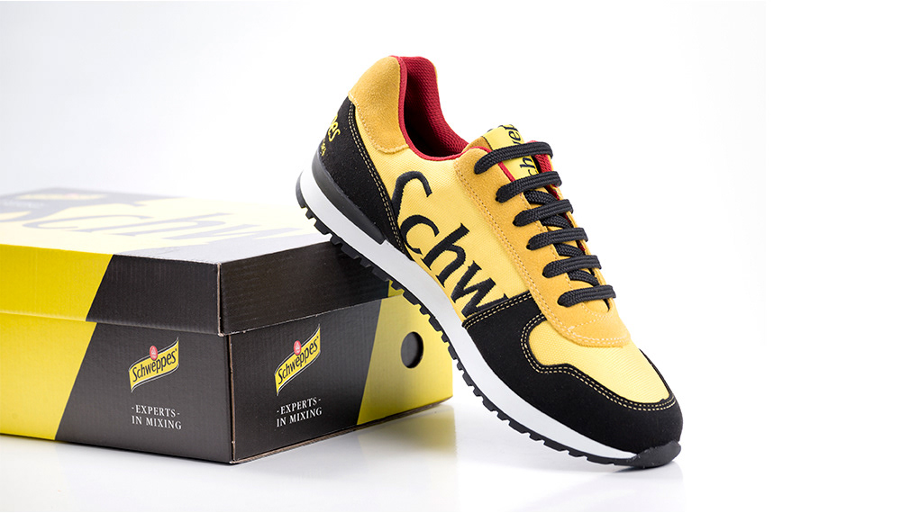 Diseño de zapatillas y packaging para Schweppes, creadas para los comerciales e imagen de la marca.
